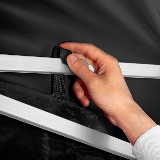 eenvoudig kliksysteem gebruiksklaar. Dak en zijden zijn via haken en