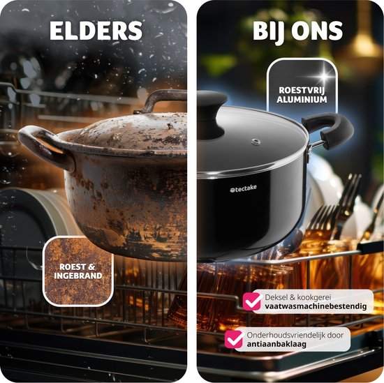Of je nu eenvoudige dagelijkse gerechten bereidt of uitgebreide feestmaaltijden - met de 15-delige pannenset Varese van tectake zijn er geen grenzen meer aan je culinaire creativiteit.