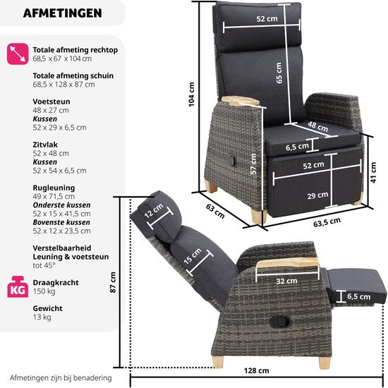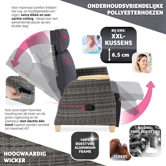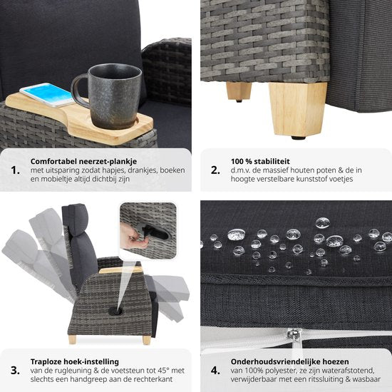 tuinstoel ; loungestoel ; tuinmeubel ; luxe stoel ; serre ; fauteuil ; verstelbare tuinstoel ; 6-standen stoel ; 5-standen stoel ; ligstoel ; stoel met voetensteun ; opklapbaar ; opklapbare tuinstoel , verstelbare rugleuning , relaxstoel , stoel met voetensteun , ligstoel , leesstoel , polyrotan , polyrattan