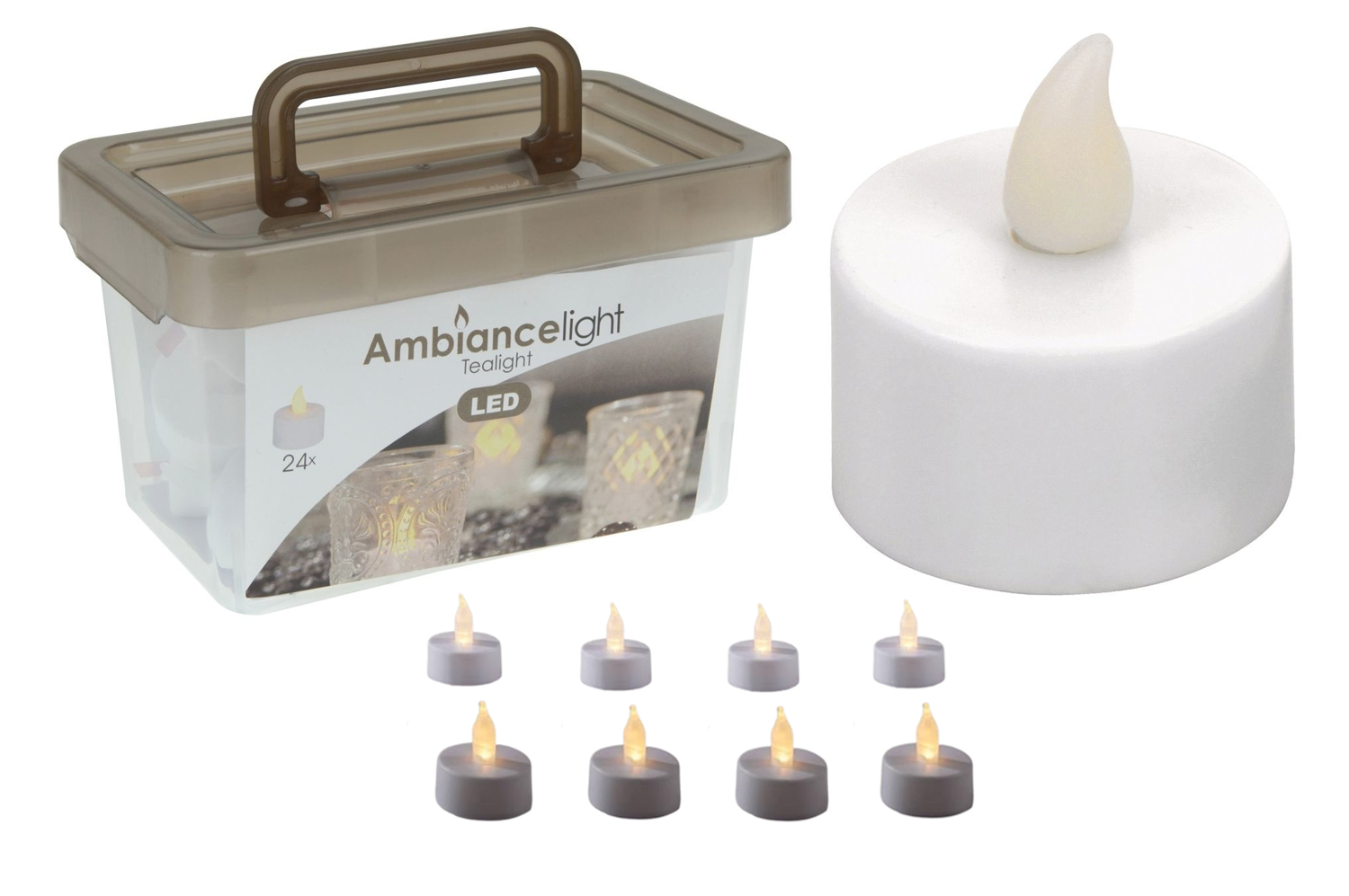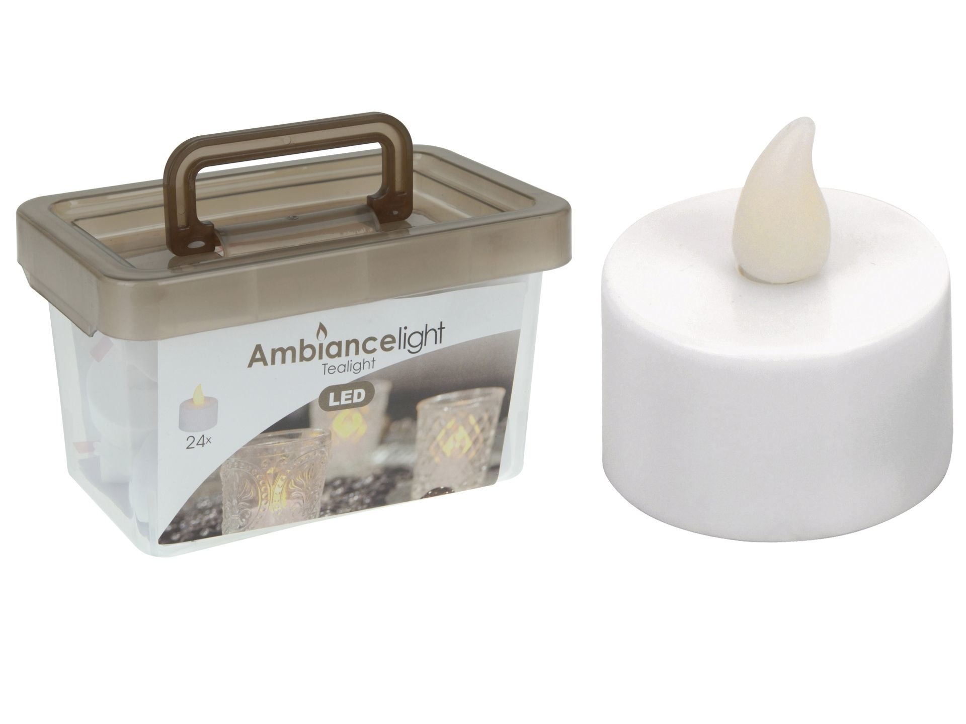 Kenmerken: * Voor veilig sfeervol licht * Realistisch (warm wit) * Inclusief 24 stuks CR2032 knoopcellen * In praktische plastic doos * Op batterijen * Levensduur 60 - 96 uur Maak het weer gezellig in huis met deze LED lichtjes. Deze LED theelichtjes maken het extra gezellig in huis. Deze kaarsen zorgen voor een huiselijke sfeer. Ervaar het gemak en veiligheid. Geen last van kaarsvet, geen vuur, geen brandgevaar! Deze 24-delige LED theelichtset wordt geleverd inclusief batterijen in een plastic doosje voor opslag. Voor mooi licht zonder brandgevaar. Met een levensduur van minstens 60 uur. Leveringsomvang: 1 x LED theelichtjes, 24 stuks doos