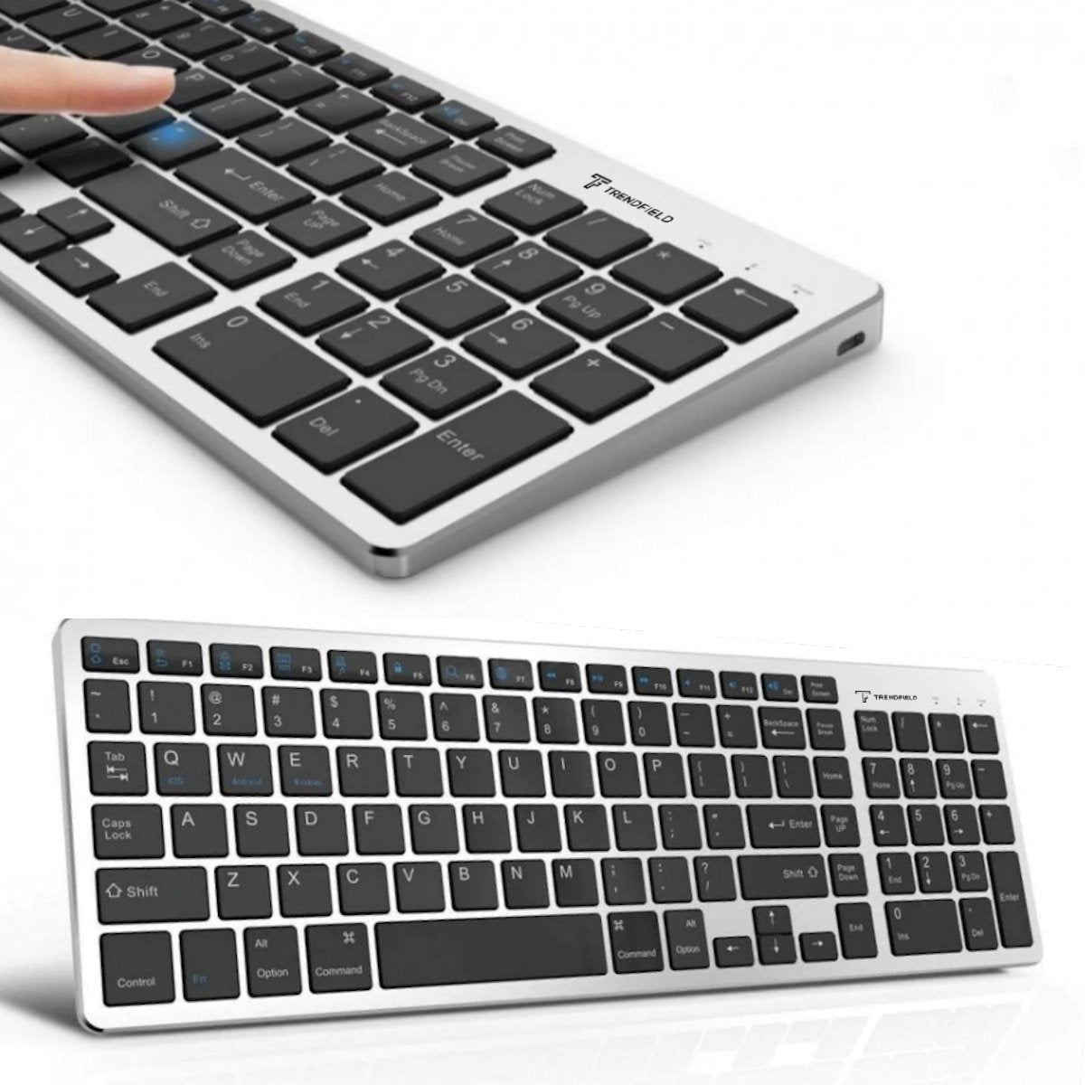 Dit draadloos bluetooth toetsenbord met numpad van Trendfield biedt alles wat je nodig hebt voor comfortabel gamen, surfen of werken. Het toetsenbord heeft een traditionele QWERTY indeling en is daarnaast voorzien van een handig numeriek toetsenbord. Omdat het op bluetooth werkt, gebruik je het voor je pc, maar ook als toetsenbord voor tablet (iPad, Android en Windows) of smartphone. Door de slimme indeling is het een compleet maar compact toetsenbord, waardoor je het makkelijk meeneemt in je tas.