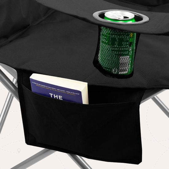 TRVLMORE Campingstoel - Opvouwbaar - Comfortabele Vouwstoel - 150 kg draagvermogen - Drankhouder - Koelvak - Zijvak - Zwart