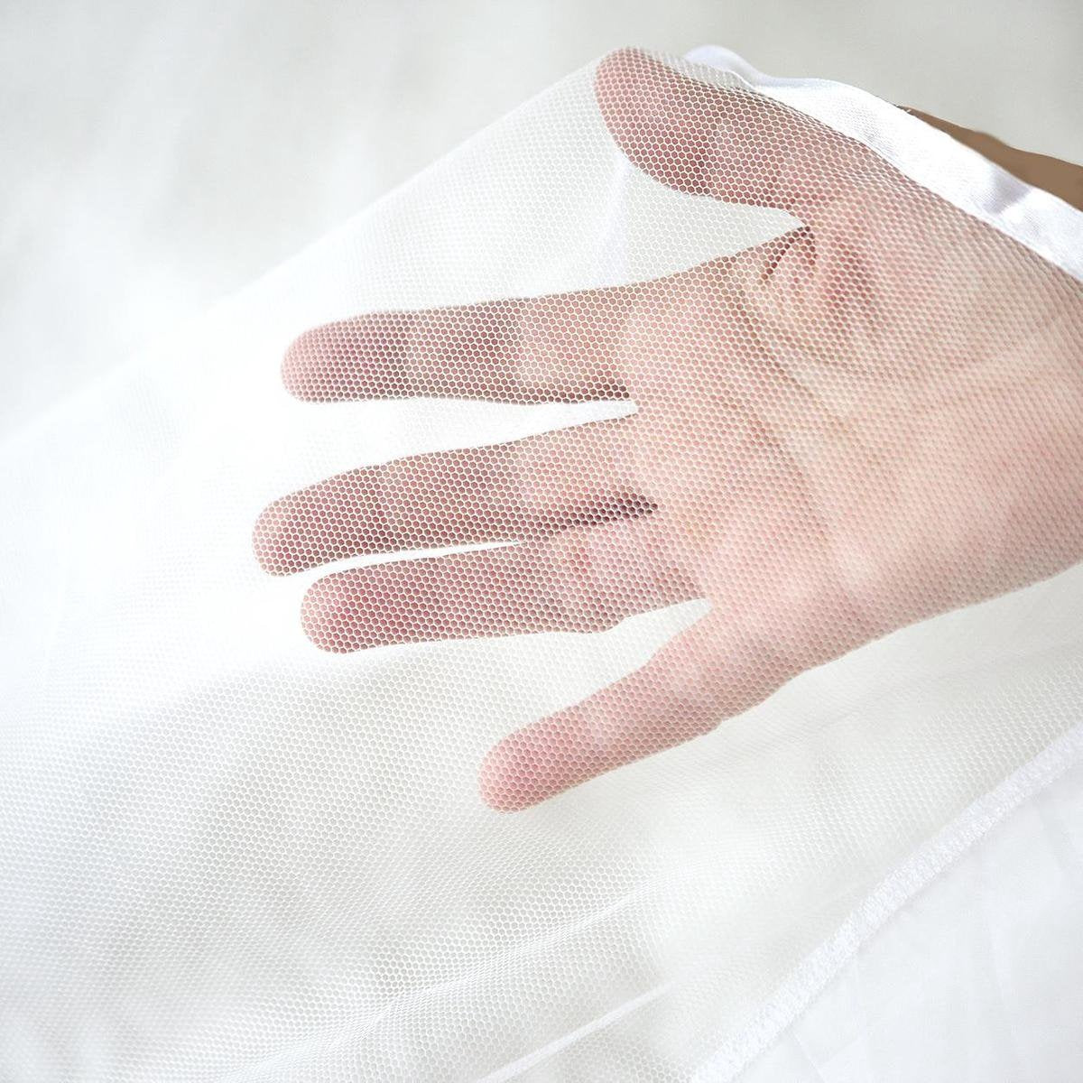 De TRVLMORE klamboe is gemaakt van zeer sterk geweven en duurzaam polyester. Met een dichtheid van maar liefst 256 gaatjes per 5 cm2 is er geen twijfel meer mogelijk dat er geen enkel insect kan binnendringen. Bescherm jezelf tegen irritant gezoem, vervelende muggenbeten (of erger) en verzeker jezelf van een fijne nachtrust. De TRVLMORE Klamboe is aan de randen extra verstevigd, dit voorkomt scheuren of gaatjes en staat ook nog eens super sierlijk.