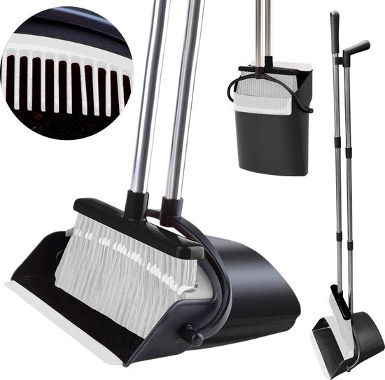 - XXL verstelbare steel op zowel de stoffer als het blik: je hoeft nooit meer te bukken om vuil op te vegen.n! De bezem heeft een lengte van minimaal 54 cm en reikt tot maar liefst 263 cm maximaal!