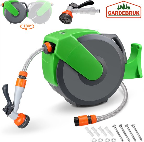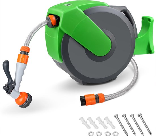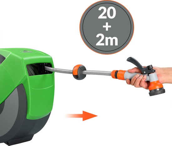 Tuinslanghaspel, 20m slang, waterslanghaspel, automatisch intrekbaar, wandslangbox, tuinslangopbergsysteem