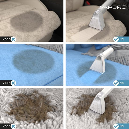 Wil je snel af van vlekken en je huis in topcondition houden? Dan is de Vapore Vlekkenreiniger ideaal voor jou! Met zijn krachtige 1200W motor en hoogwaardige warmtesysteem, kun je eenvoudig tapijten, meubels, auto-interieurs, matrassen en meer reinigen. De meegeleverde 3 extra accessoires en de flexibele slangen van 179 cm maken het mogelijk om zelfs de moeilijkste plekken te bereiken. Bovendien wordt dankzij de indrukwekkende zuigkracht van 12.000 Pa maar liefst 98% van het water efficiënt verwijderd. Bestel nu en ervaar een schoon en verfrist huis!