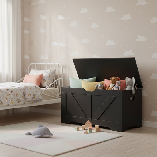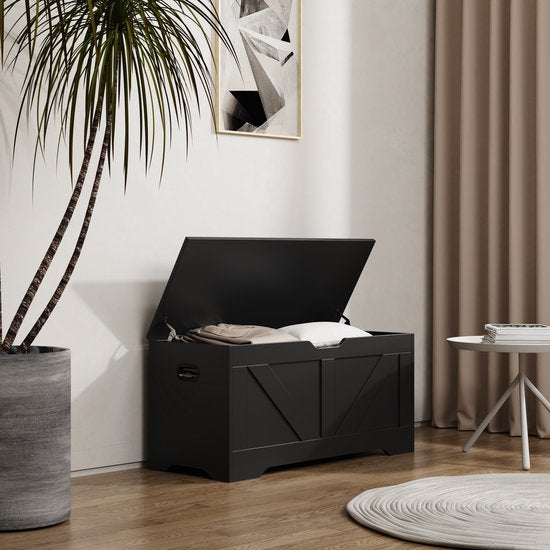VDD - Opbergkist - Opbergkist hout - Opbergbox - Speelgoedkist - Dekenkist - Opbergkist binnen - zwart - groot - 100 x 40 x 46 cm