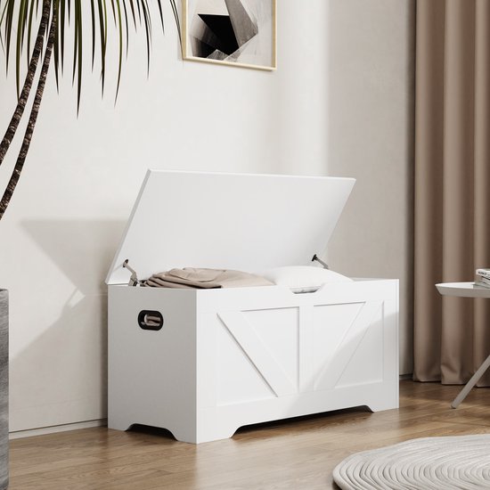 VDD - Opbergkist - Opbergkist Wit - Opbergkist hout - Speelgoedkist - Dekenkist - wit - groot - 100 x 40 x 46 cm
