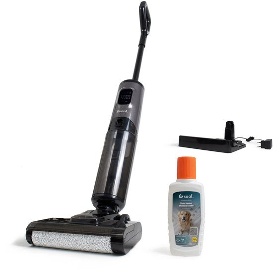 De Saaf vloerreiniger biedt de ideale 2-in-1 oplossing voor het eenvoudig stofzuigen en dweilen. Dankzij de krachtige motor zonder borstel en de uitzonderlijk lange batterijduur wordt reinigen efficiënter dan ooit tevoren. Met de ingebouwde spraakfunctie en het slimme LED-display is de bediening simpel en intuïtief.