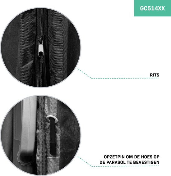 - **GC515XX**: 220x45cm voor parasols tot 400cm, o.a. geschikt voor GP501XX, GP502XX, GP506XX.
