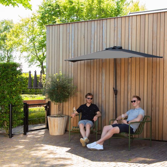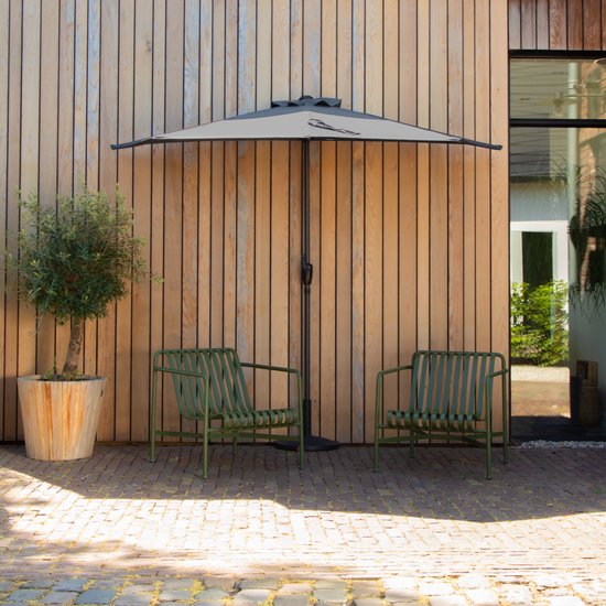 - Door de halfronde vorm kan de parasol direct tegen een muur geplaatst worden. Perfect voor balkons, patio's, terrassen of compacte tuinen.