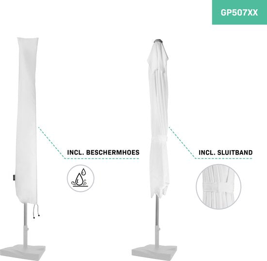 Daarnaast bieden wij de optie om de parasol en voet als een complete set te bestellen! Ontdek de: Parasol Rapallo 200x300cm – Premium rechthoekige parasol – wit - Inclusief Parasolvoet (GP507XX WHITE C2)