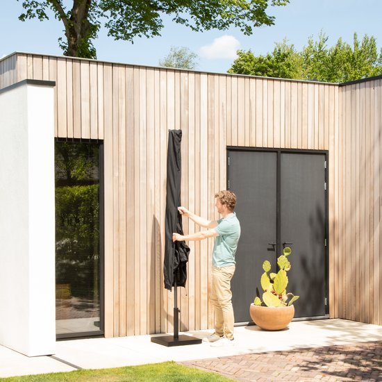 Bij de parasol wordt standaard een beschermhoes meegeleverd. Deze hoes is uitgerust met een rits en een handige (carbon fiber) hulpstok, waardoor het plaatsen en verwijderen een fluitje van een cent is. VONROC garandeert hierbij een lange levensduur en jarenlang plezier!