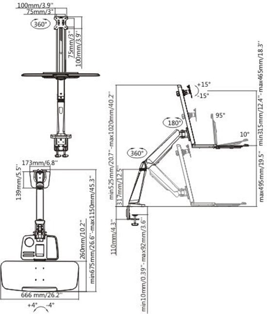 De ergonomische beugel biedt een uitstekende combinatie van comfort, bewegingsvrijheid en productiviteit. Dankzij het innovatieve full-motion gasveermechanisme kun je eenvoudig jouw ideale werkhouding instellen, waardoor je altijd de beste kijkpositie kunt bereiken. Het beeldscherm is 180 graden draaibaar en kan +15 graden en -15 graden gekanteld worden, evenals 180 graden roteren voor zowel portrait als landscape weergave.