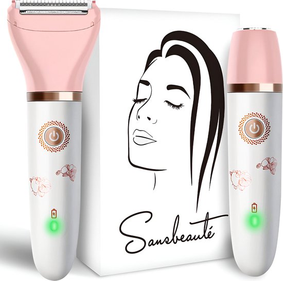 2-in-1 Ladyshave Gezicht - Oksels - Benen - Bikinilijn - Sansbeauté® - Scheerapparaat Vrouw - Ontharingsapparaat Electrisch Ontharen - Gezichtsontharing Dames - Trimmer Vrouw - Ladyshaves Bikini - USB Oplaadbaar