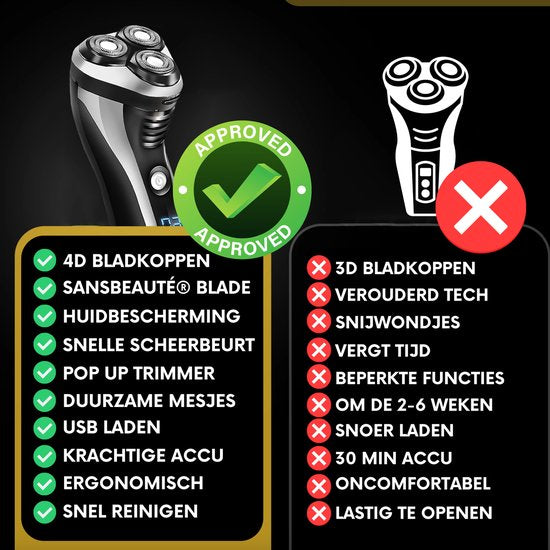 ✓ 4D Rotatietechnologie – Beleef de ultieme precisie en comfort tijdens het scheren met onze flexibele 4D scheerbladen. Terwijl andere scheerapparaten beperkt zijn tot 3D roterende bladen, biedt ons model de voordelen van een 4e dimensie! Deze bladen passen zich aan de contouren van uw gezicht en hoofd aan en verwijderen elk haartje snel en effectief! Met de unieke 4D rotatietechnologie blijft er geen enkel haartje achter, ervaar het zelf!