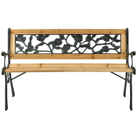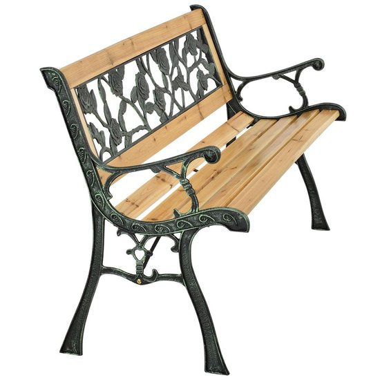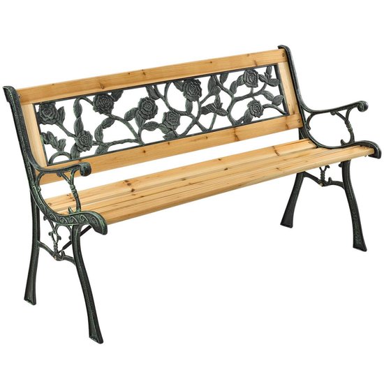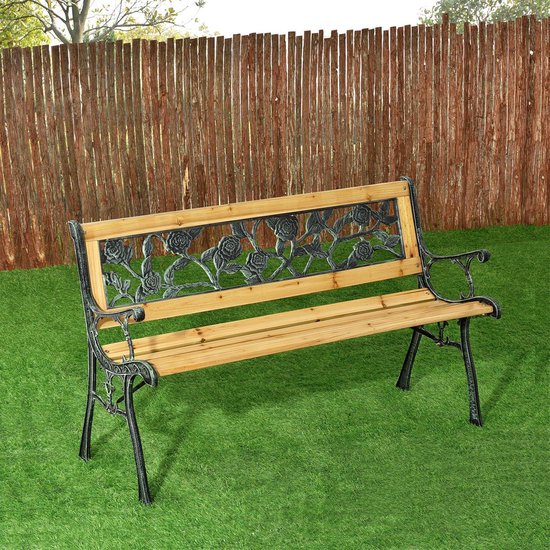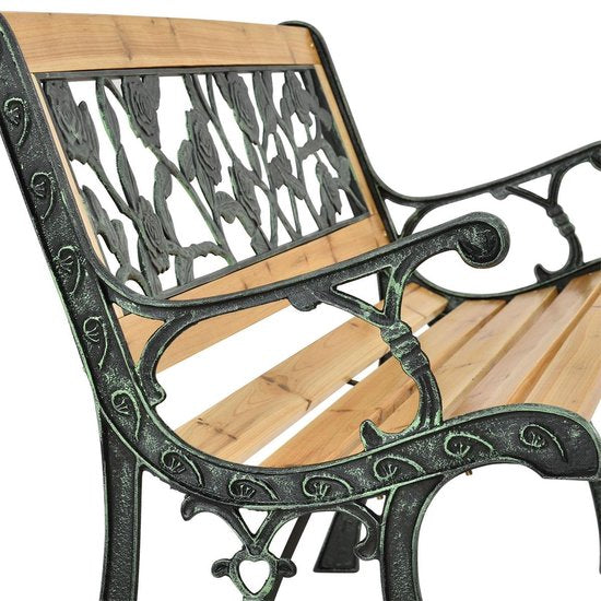 2 Zits tuinbank - Venezia roos motief - Espenhout gietijzer