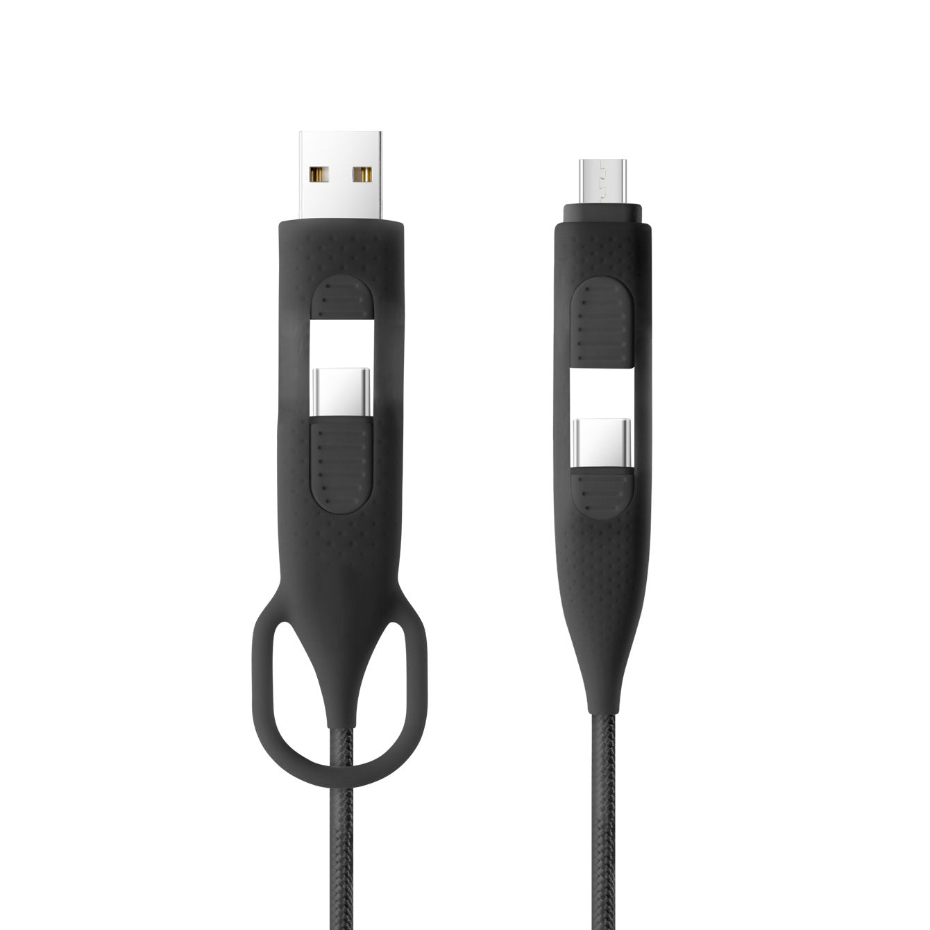 Bidirectionele USB-C-connector converteert USB-A, Micro USB 4-in-1 oplaad- en transmissiekabel. Flexibele adapter met 'one-piece' anti-drop ontwerp. Extra bandontwerp, slimme intrekbare kabel, verstelbare gebruiksduur. Nylon gevlochten kabel is slijtvast, sterk en flexibel. Gelijktijdig opladen en gegevensoverdracht, ondersteunt PD-snelladen. Kan gebruikt worden met een USB-C naar Lightning adapter.
