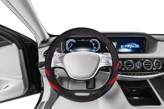All Ride Stuurhoes Auto 38CM - Geschikt voor Stuurwielen 37-39CM - Comfortabele Grip - Anti-Slip - Auto Decoratie - Kunstleer - Zwart/Rood