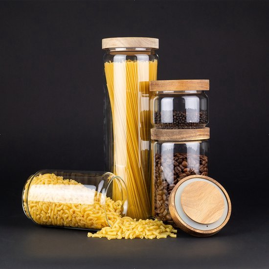 alpina Glazen pot met Deksel - 1650 ML - Vaatwasserbestendig - Borosilicaatglas en Accaciahout