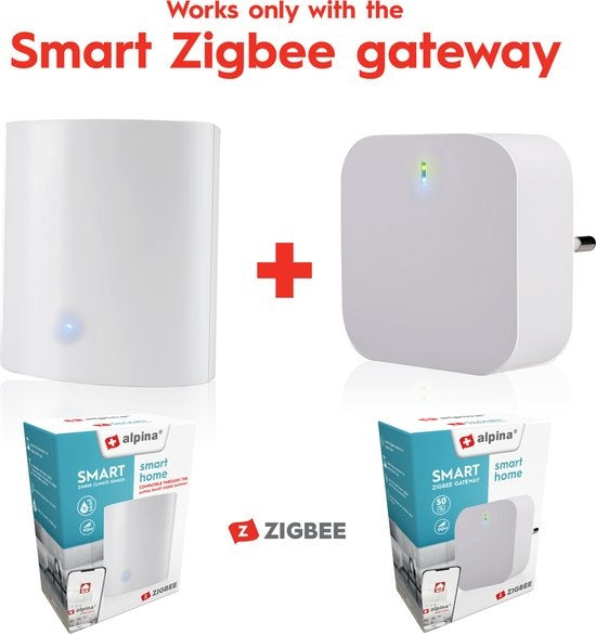 Omdat de watermelder niet zelfstandig met je wifi netwerk kan verbinden, kun je de deur sensor enkel gebruiken in combinatie met de Zigbee Gateway. Binnen de alpina Smart home lijn zijn verschillende producten met elkaar te verbinden. Denk daarbij aan de raam of deur sensor, de klimaatsensor, het bewegingsalarm en de vibratiesensor. Dit loopt allemaal via de los aan te schaffen Zigbee Gateway. Met deze Zigbee Gateway verbindt je tot wel 50 verschillende alpina Smart home apparaten aan elkaar, waardoor deze met elkaar kunnen communiceren. De werking en instellingen van elk apparaat, zo ook de Zigbee Gateway, kan met de alpina Smart home app bewerkt worden.