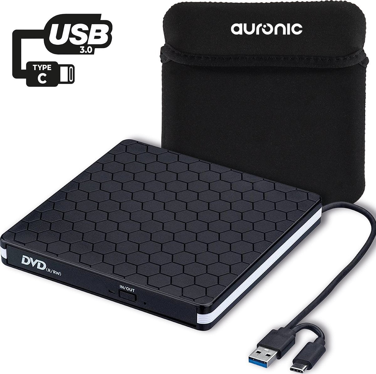 Auronic Externe DVD Speler - Voor Laptop en Brander - USB 3.0 of USB C - Windows, MacOS & Linux - Incl. Hoes + Kabel