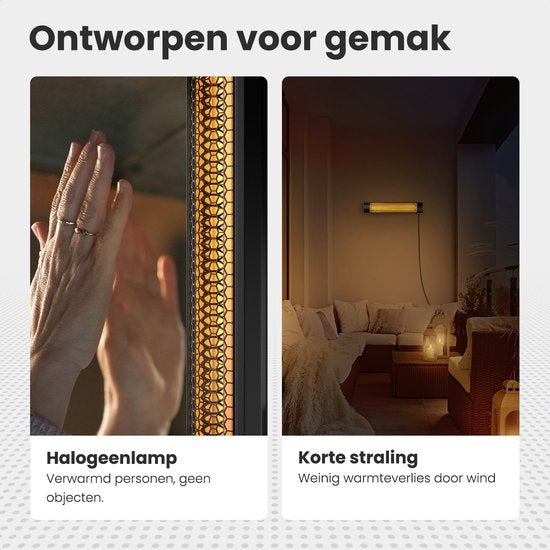 Het geheim van de effectiviteit van deze verwarmer ligt in de halogeenlamp. Deze technologie verwarmt personen en objecten, en niet de omgeving. Dit betekent dat zelfs op winderige terrassen de warmte direct op jou gericht is, met weinig warmteverlies door de wind. En het beste van alles? Het wordt onmiddellijk warm, dus je hoeft niet meer te wachten in de kou.
