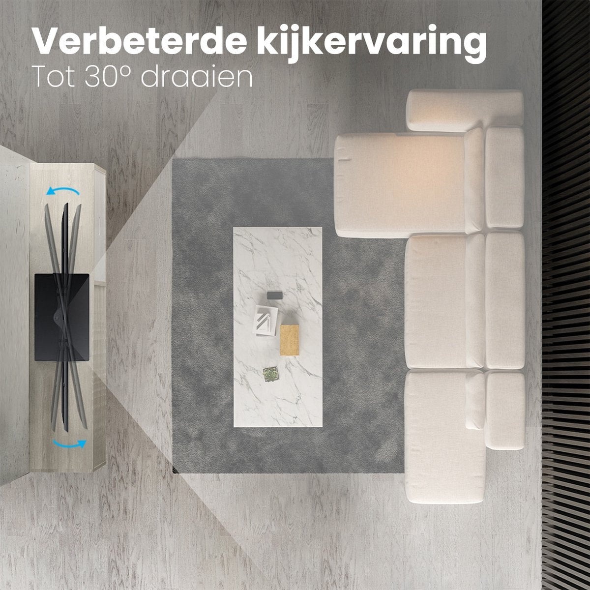 Kantelbaar en draaibaar: Draai de TV tot 60° (30° naar links en 30° naar rechts) voor een optimale kijkhoek vanuit elke hoek van de kamer.