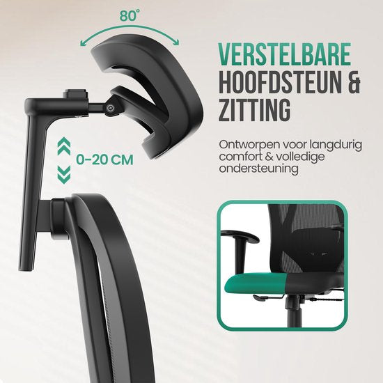 Avalo Ergonomische Bureaustoel Met Hoofdsteun - NEN1335 - Bureaustoelen Voor Volwassenen - Bureau Stoel - Incl. 2 Sets Krasvrije Wielen Voor Harde / Zachte Ondergrond