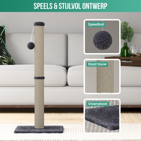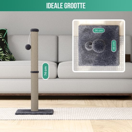 Avalo Krabpaal met Speelballetje - 36x36x74 - Donkergrijs - Krabpaal voor Katten