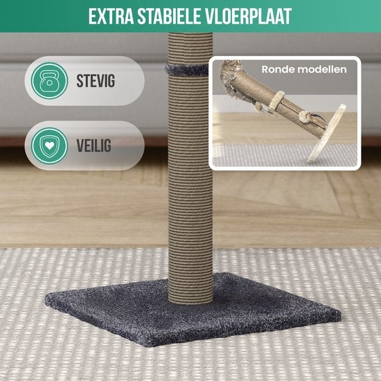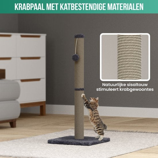Deze krabpaal is perfect voor alle katten. Leer je kat dat ze hun nagels moeten scherpen aan een krabmeubel en niet aan de bank, stoelen of het vloerkleed. Door het gebruik van katbestendige materialen en meerlaags sisal touw gaat deze krabpaal een lange tijd mee.