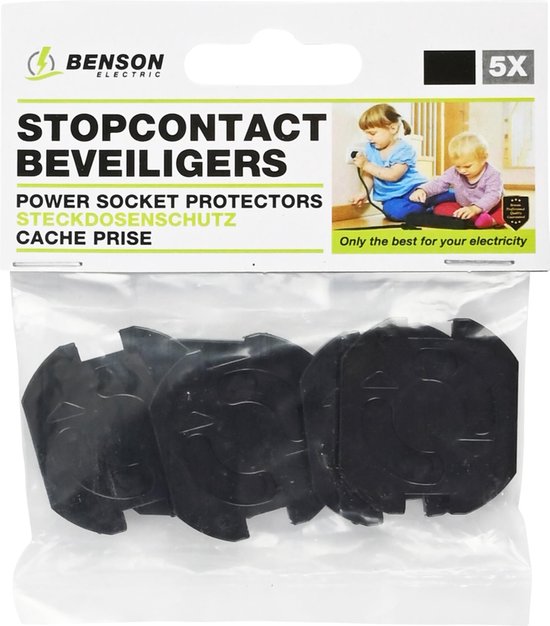 Benson Zwarte stopcontactbeveiligers - set van 5 - eenvoudige installatie - optimale bescherming