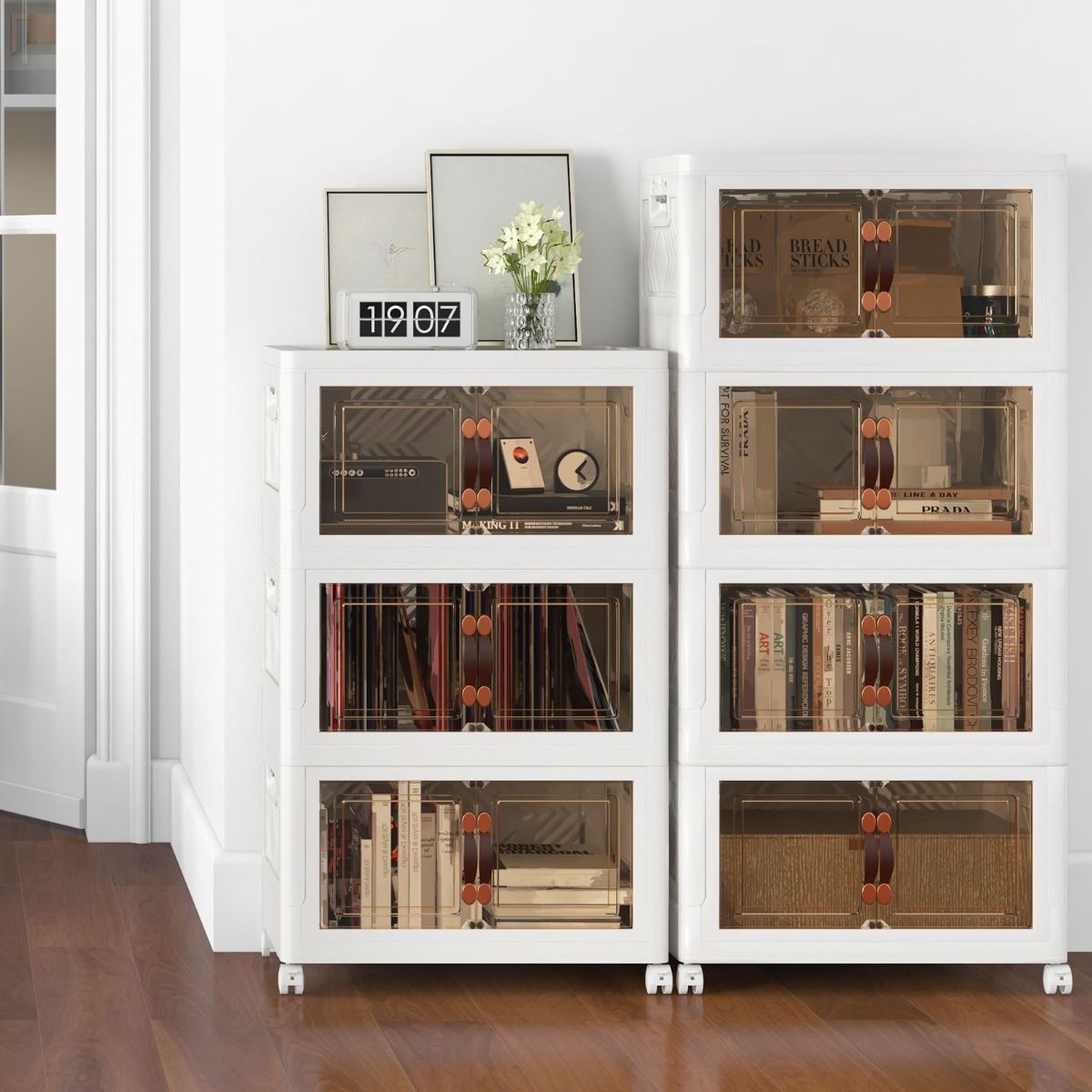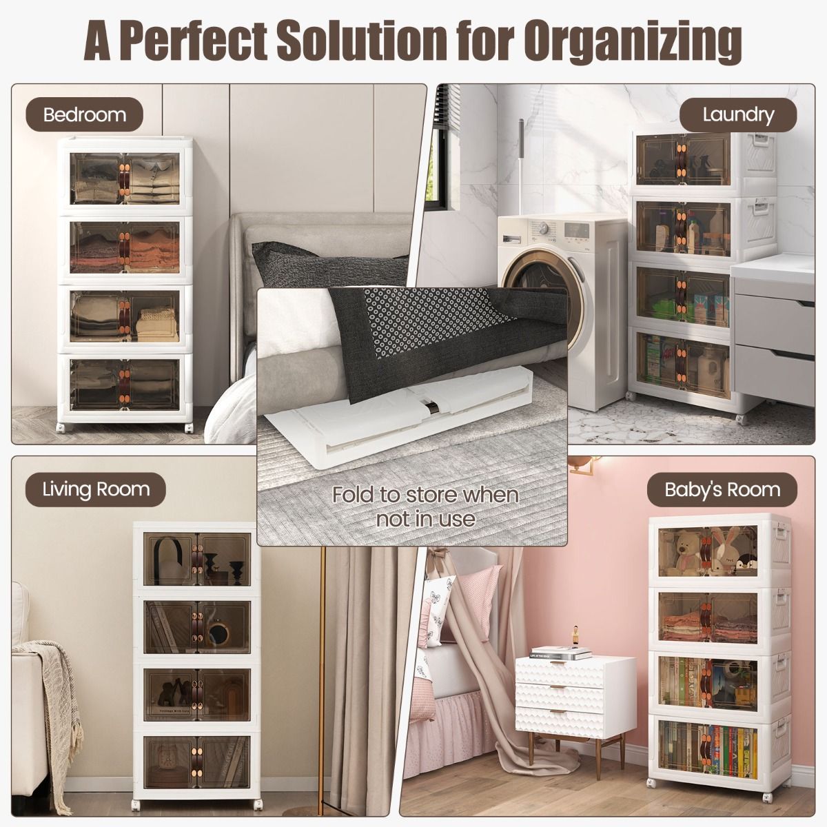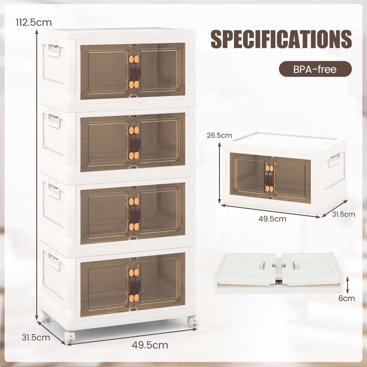 Stapelbaar en opvouwbaar ontwerp: De organizer bestaat uit 4 praktische PP-bakken, die vrij gestapeld of gedemonteerd kunnen worden dankzij het ontwerp met zijvergrendeling. Bovendien kun je elke box losmaken en opvouwen als je hem niet gebruikt. De enkele opbergbox is compact in formaat als hij opgevouwen is, zodat hij gemakkelijk onder het bed of de bank past.