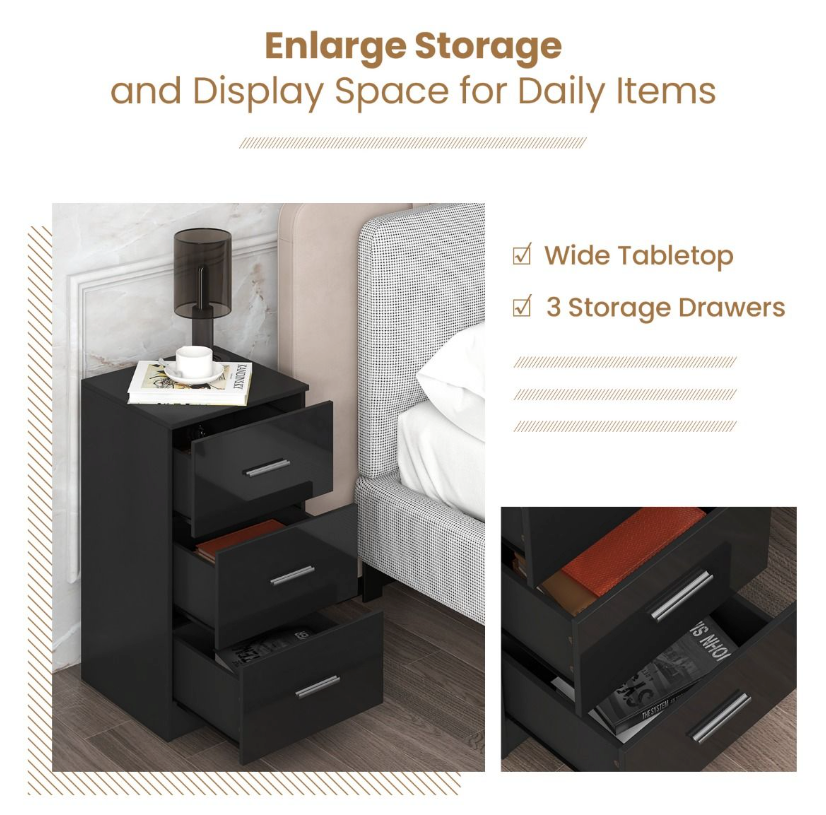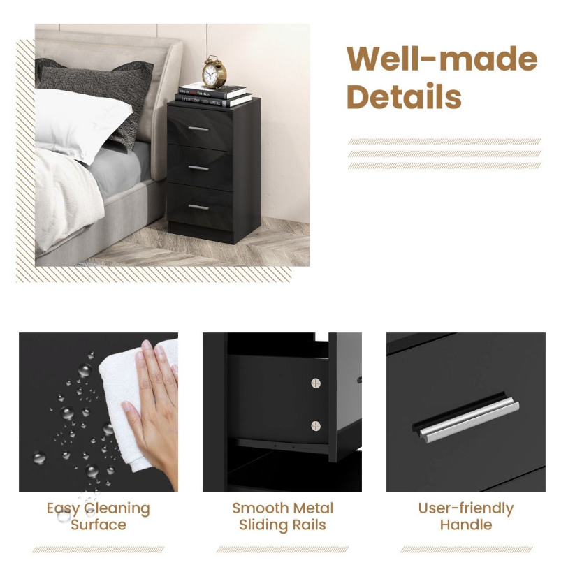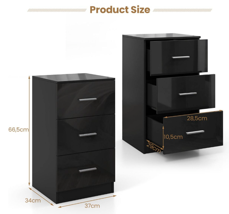 Kenmerken: Drie laden, compact design, stevige bovenplaat