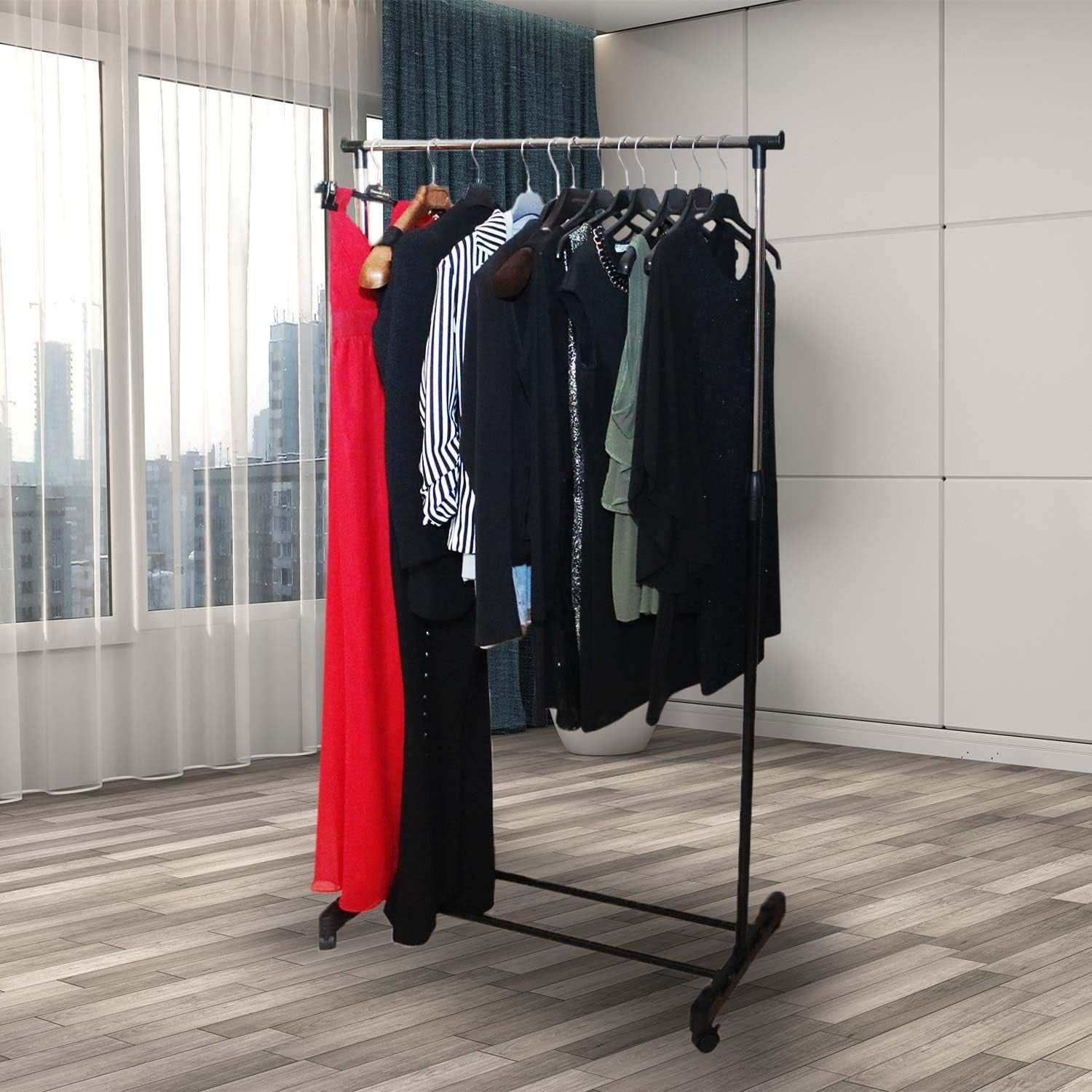Dit kledingrek is ontworpen voor gebruiksgemak en duurzaamheid: een stabiele stalen constructie, eenvoudige (gereedschapsloze) montage en wielen die zowel rollen als blokkeren voor stabiliteit. Het rek is ideaal voor kleinere woonruimtes zoals studentenkamers, logeerkamers of de kinderkamer, maar werkt ook goed als extra opbergruimte in huis of tijdens een verhuizing.