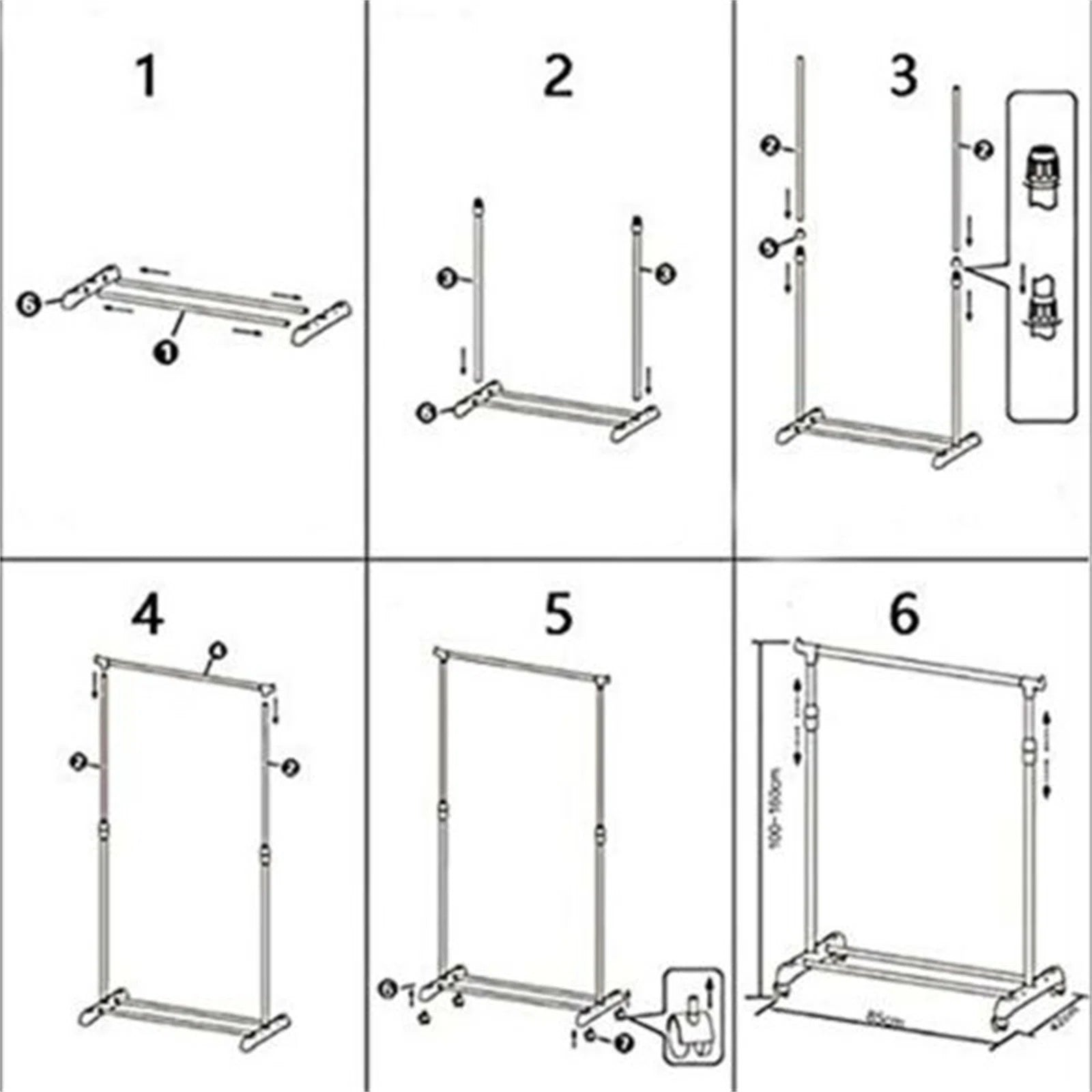 In de verpakking vindt u het complete kledingrek inclusief vier wielen, alle benodigde bevestigingsmaterialen en een duidelijke montagehandleiding zodat u het rek snel in gebruik kunt nemen.