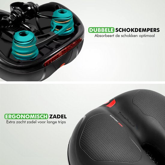 Travelhawk Fietszadel - Stadszadel - Extra Comfortabel - Ventilerend - Unisex - Zwart