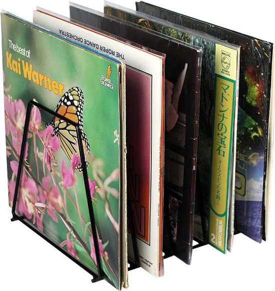 Dit is een uiterst handig en mooi elpee bladerrek vinyl LP platen retro design meubel opbergrek voor 50 stuks. Dit elpee vinyl platen opbergrek is een nieuwe en innovatieve optie voor uw vinyl platen LP collectie op te bergen te ordenen en makkelijk door te bladeren. Deze lichte constructie gemaakt van zwart geëpoxeerd staal combineert een lange levensduur met een elegant design. U kunt deze rekken op talloze manieren combineren en uitbreiden. Dit vinyl rek is een echt functioneel en decoratief element in elke woonruimte. Geschikt voor maximaal 50 LPs. Kleur zwart. Afmetingen: breed 24,5 cm x diep 32.5 cm x hoog 21.5 cm.