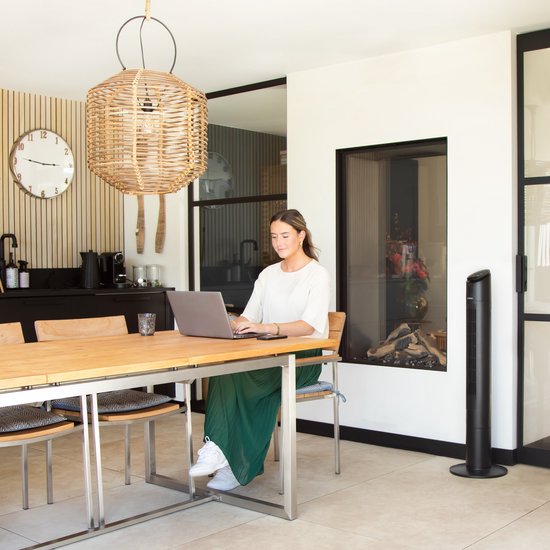 Deze stijlvolle torenventilator wordt een chique en opvallende toevoeging aan jouw interieur. Het prachtige, modern ontworpen bedieningspaneel is uitgerust met een LED-display en stijlvolle touch-knoppen. Er zijn 3 verstelbare snelheden (laag, gemiddeld, hoog), en er is een 15-uurs timer aanwezig. Dankzij de oscillatiefunctie wordt de hele ruimte gelijkmatig van frisse lucht voorzien. De ventilator wordt geleverd met een afstandsbediening, zodat je hem gemakkelijk vanaf elke plek kunt bedienen. Een leuk detail is dat er een handig opbergvak voor de afstandsbediening in de toren is geïntegreerd.