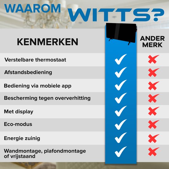 Breng stijlvolle en efficiënte verwarming in je huis met de Witts Slimme Paneelverwarmer. Deze hoogwaardige verwarmingsoplossing combineert geavanceerde technologie met een strak design, zodat je niet alleen van warmte geniet, maar ook van een elegant interieur.