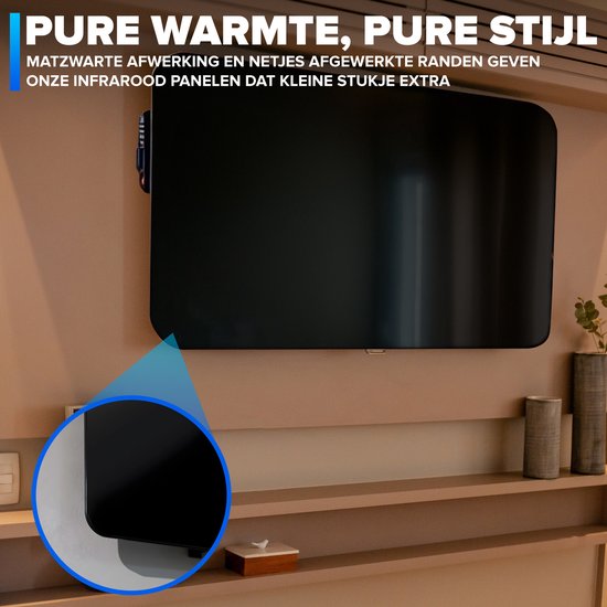 Elegant Design: Het zwarte, geharde glas van de voorzijde geeft de verwarming een moderne en luxe uitstraling, die in elk interieur past.