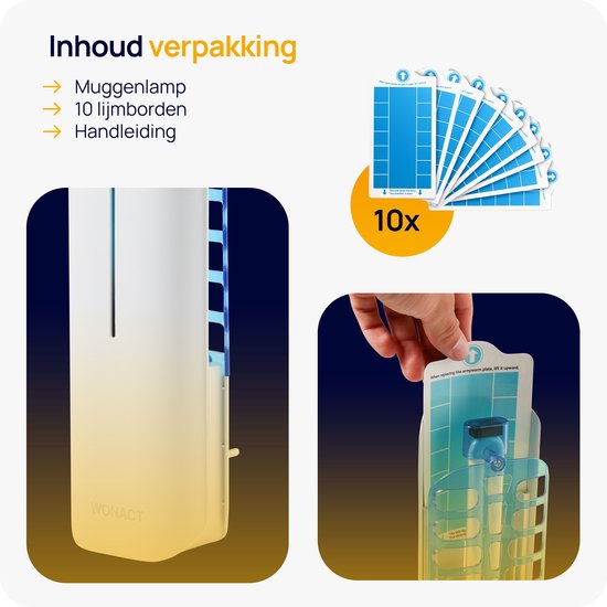 De Wonact muggenstekker maakt gebruik van een krachtige 9W UV-LED om insecten aan te trekken. De lokinsecten blijven gevangen...Insecten blijven onzichtbaar kleven op de plakkerige plaat. Na slechts 30 minuten merkt u al een verschil. Door zijn stille werking is hij perfect voor gebruik in de nachtelijke uren, zoals in slaapkamers en kinderkamers.