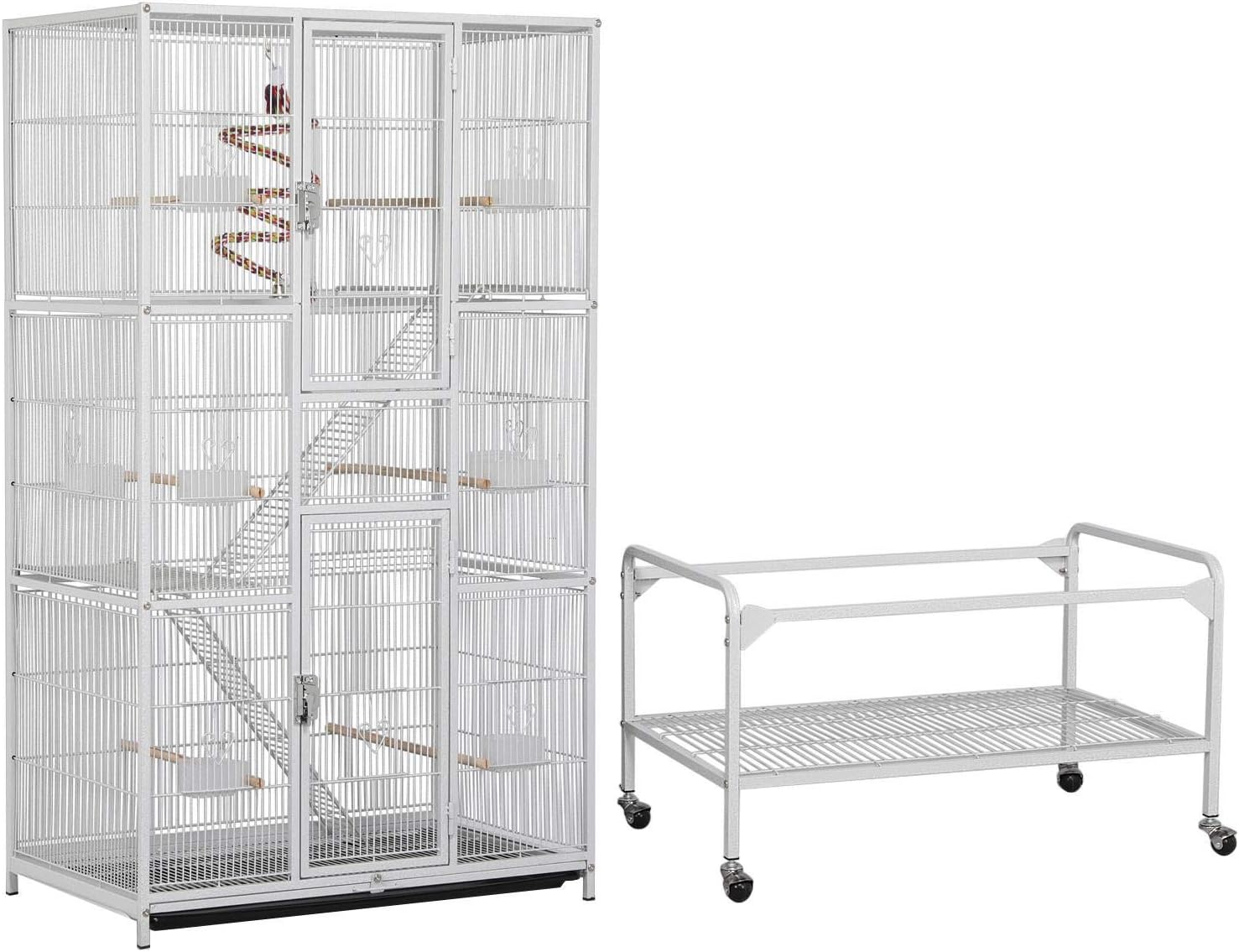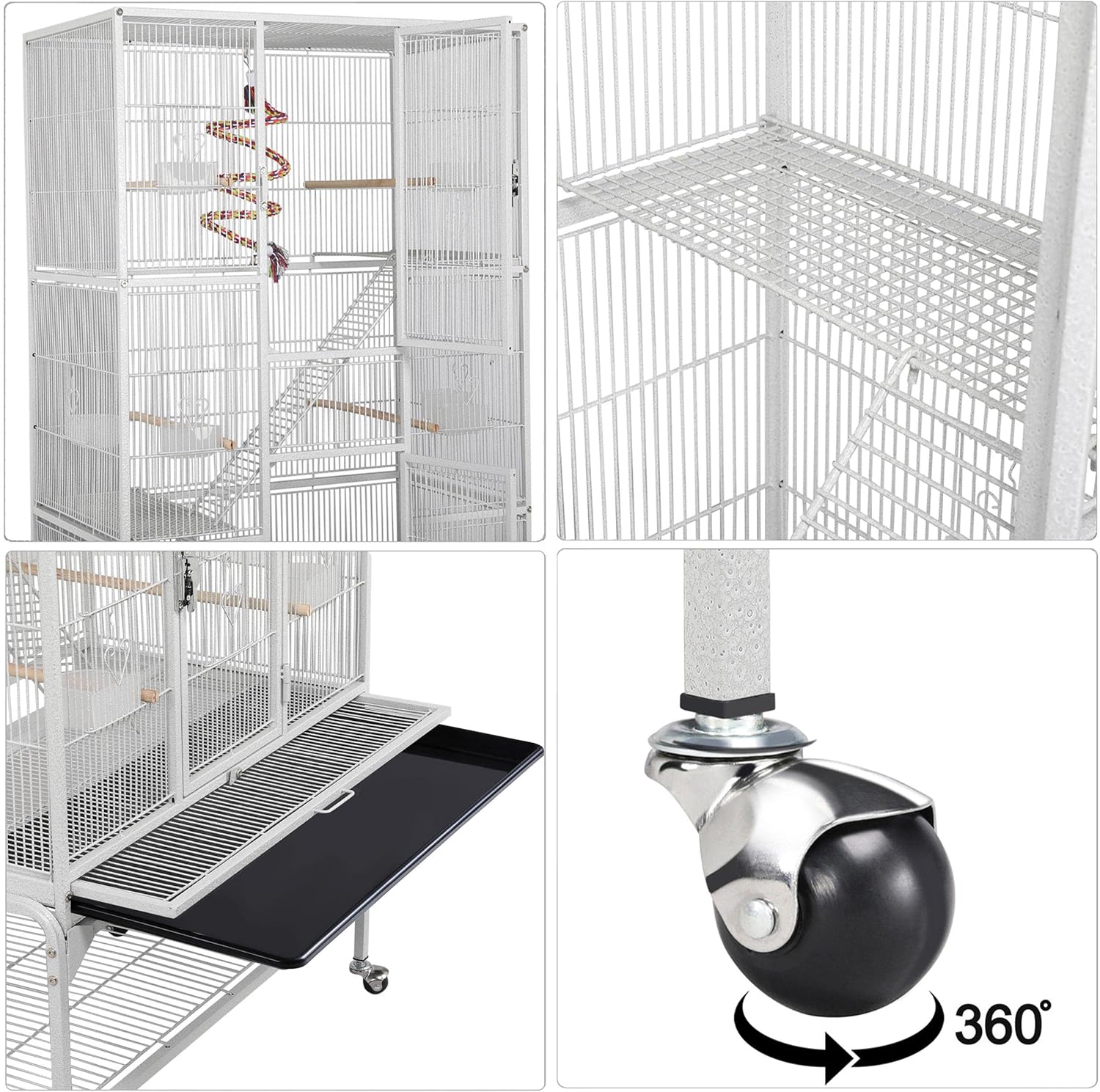 Yaheetech 175 cm Extra Grote Vogelkooi met Afneembare Standaard voor Middelgrote Papegaaien, Parkieten, Valkparkieten, Conures, Liefdesvogels, Grasparkieten en Finch – Wit