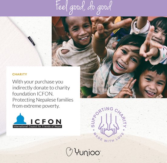 Met de aanschaf van het Yunioo matras support je indirect een goed doel. Yunioo doneert namelijk een deel van de opbrengst aan een Nederlandse stichting die zich al meer dan 30 jaar met succes inzet om Nepalese gezinnen uit extreme armoede te helpen.